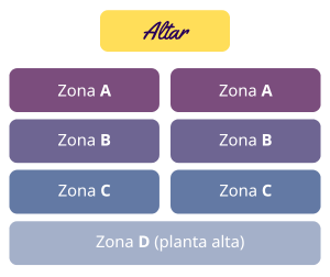 Tenemos diferentes zonas dependiendo de la visibilidad deseada. Contamos con Zonas A, B, C y D (en planta alta).